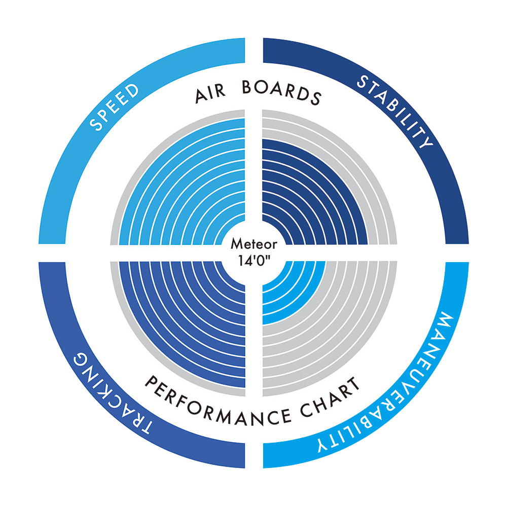 Aztron Meteor SUP lauta on 427 cm (14'0") pitkä, nopea kilpalaudaksikin sopiva malli. Laudassa on kaksi erillistä ilmasäiliötä. Se on valmistettu 2-kerros materiaalista. Laudan pitkä virtaviivainen muoto tekee laudasta nopean. Lautasettiin kuuluu laudan lisäksi säädettävä alumiinimela, laadukas pumppu painemittarilla, sekä kantokassi. Laudan kantavuus on jopa 160 kg.