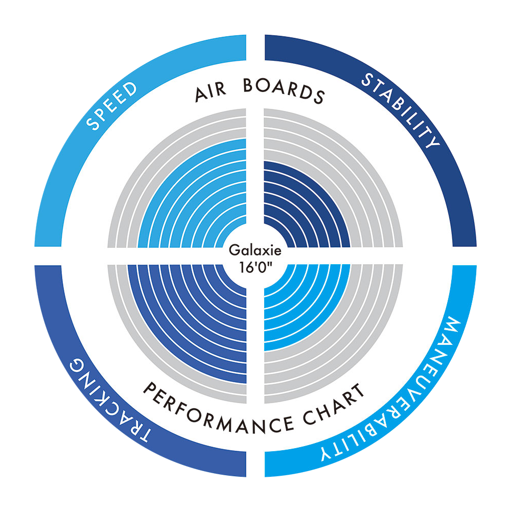 Aztron Galaxie on iso laadukas ilmatäytteinen sup lauta joka sopii kahdelle tai kolmelle henkilölle kimppasuppailuun samalla laudalla. Laudan pituus on 487 cm ja leveys 86 cm. Suositeltu maksimi käyttäjien yhteispaino on 240 kg. cm ja se on varustettu kahdella ilmasäiliöllä. Settiin kuuluvat melat kolmelle hengelle.