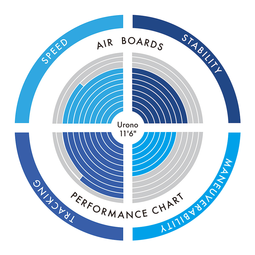 Aztron Urono SUP lauta on 350 cm pitkä, vankka touring lauta vaativampaan käyttöön. Laudassa on kaksi erillistä ilmasäiliötä. Se on valmistettu 2-kerros materiaalista. Urono laudassa on touring laudalle tyypillinen terävä kärki. Lautasettiin kuuluu laudan lisäksi säädettävä alumiinimela, laadukas pumppu painemittarilla, sekä kantokassi.