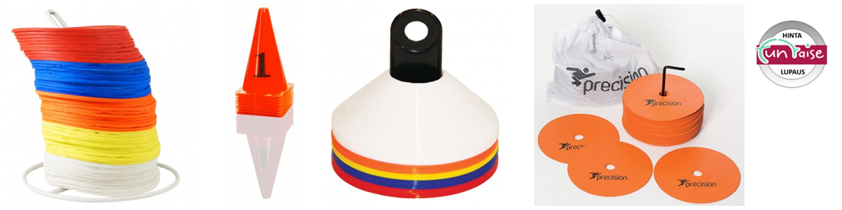 Merkkilautaset, joko laattamaiset tai matalan kartiomalliset tötsät, sopivat loistavasti erikokoisten pelikenttien nopeaan pystyttämiseen joukkueharjoituksissa. Tämä on kätevää jos harjoitellaan isolla kentällä ja halutaan jakaa pelaajat useampaan ryhmään jotakin harjoitusta varten. Värikkäillä merkeillä kenttärajat näkyvät kaikille hyvin ja harjoitus lutviutuu mainiosti. Meiltä löydät Suomen kattavimman valikoiman eri kokoisi ja värisiä merkkilautasia, kartioita ja kartiosarjoja. Ne on kehitetty nimenomaan joukkueharjoituksia ja myös koululiikuntaa silmällä pitäen. Koordinaatio-osastoltamme löydät myös muita apuvälineitä koordinaatioharjoitteluun, kuten koordinaatioaidat, pujottelukepit ja erilaiset askeltikkaat. Jos etsit jotakin mitä et löydä kaupasta, ota yhteyttä, sillä mitä todennäköisimmin pystymme löytämään tarpeitasi vastaavan ratkaisun.