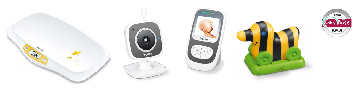 Beurer itkuhälytin on helppo ja kätevä ostaa netistä Fun Raise verkkokaupasta. Pienten lasten vanhempien aika on usein kortilla ja siksi ostosten tekeminen verkossa on erityisen kätevää kun voi tehdä ne silloin kuin sinulle parhaiten sopii. Valikoimastamme löytyy useita malleja yksinkertaisemmista perusmalleista aina monitorilla varustettuihin hälyttimiin joilla voit seurata vauvasi nukkumista myös videokameran välityksellä. Beurer itkuhälyttimet ovat erittäin laadukkaita ja luotettavia, ja siksi niissä onkin hyvin pitkät takuuajat, jopa 3 vuotta. Malleja löytyy eri hintaluokissa ja kaikkien mallien hinta on edullinen suhteessa niiden laatuun ja ominaisuuksiin. Jos haluat kysyä jotakin tai halua apua sinulle sopivimman mallin valinnassa, saat nopeaa ja asiantuntevaa apua Live asiakaspalvelustamme, jossa chattaat kysymyksesi ja asiakaspalvelijamme vastaavat ripeästi.
